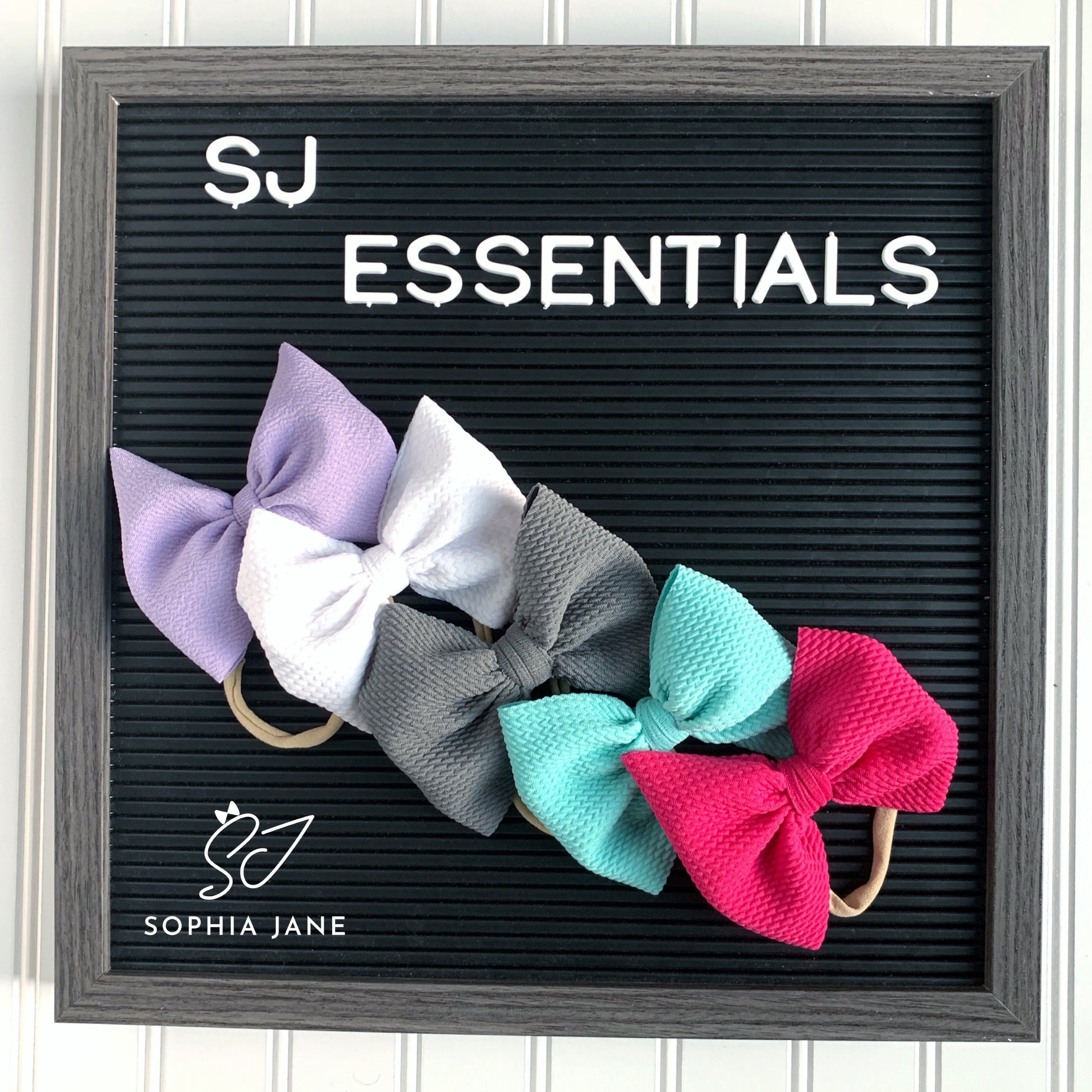 INCUDES THE FOLLOWING COLORS IN A PETITE STYLE BOW (4”) ON A BLACK OR NUDE NYLON HEADBAND