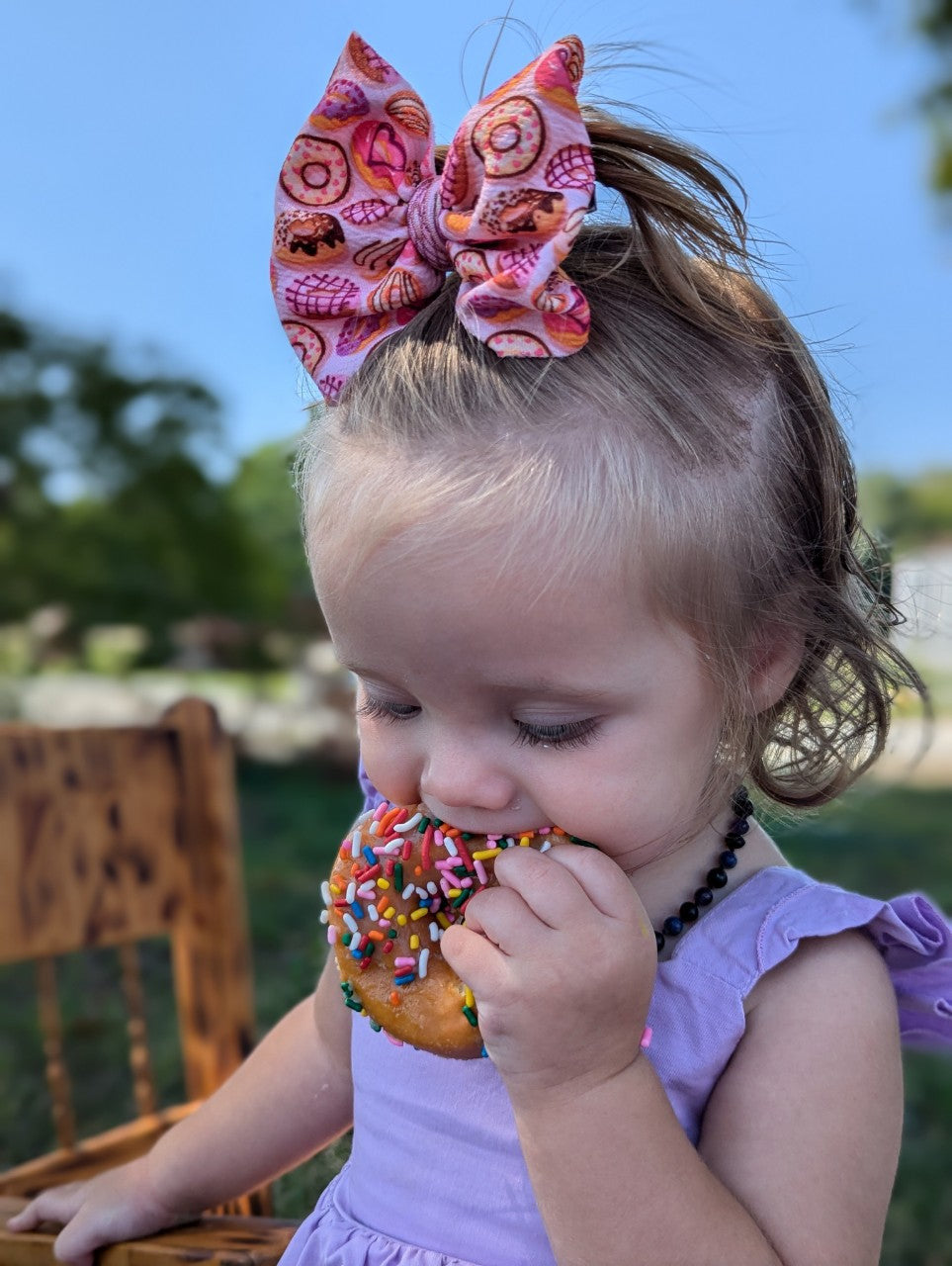 These bows come with your choice of hardware! (Options include: clip, black no slip pony tail band, or nude/black nylon stretchy headband)