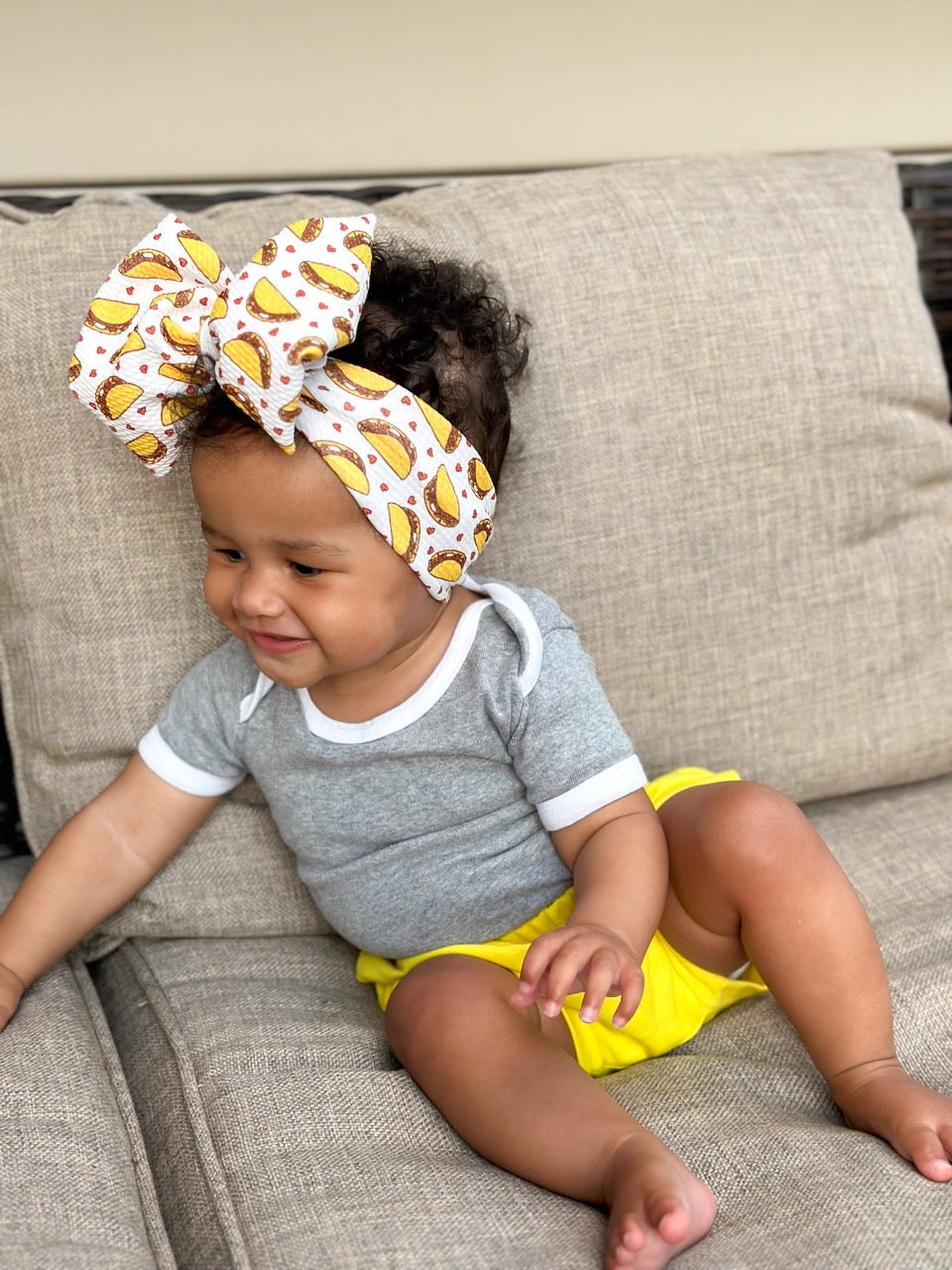 These bows come with your choice of hardware! (Options include: clip, black no slip pony tail band, or nude/black nylon stretchy headband)