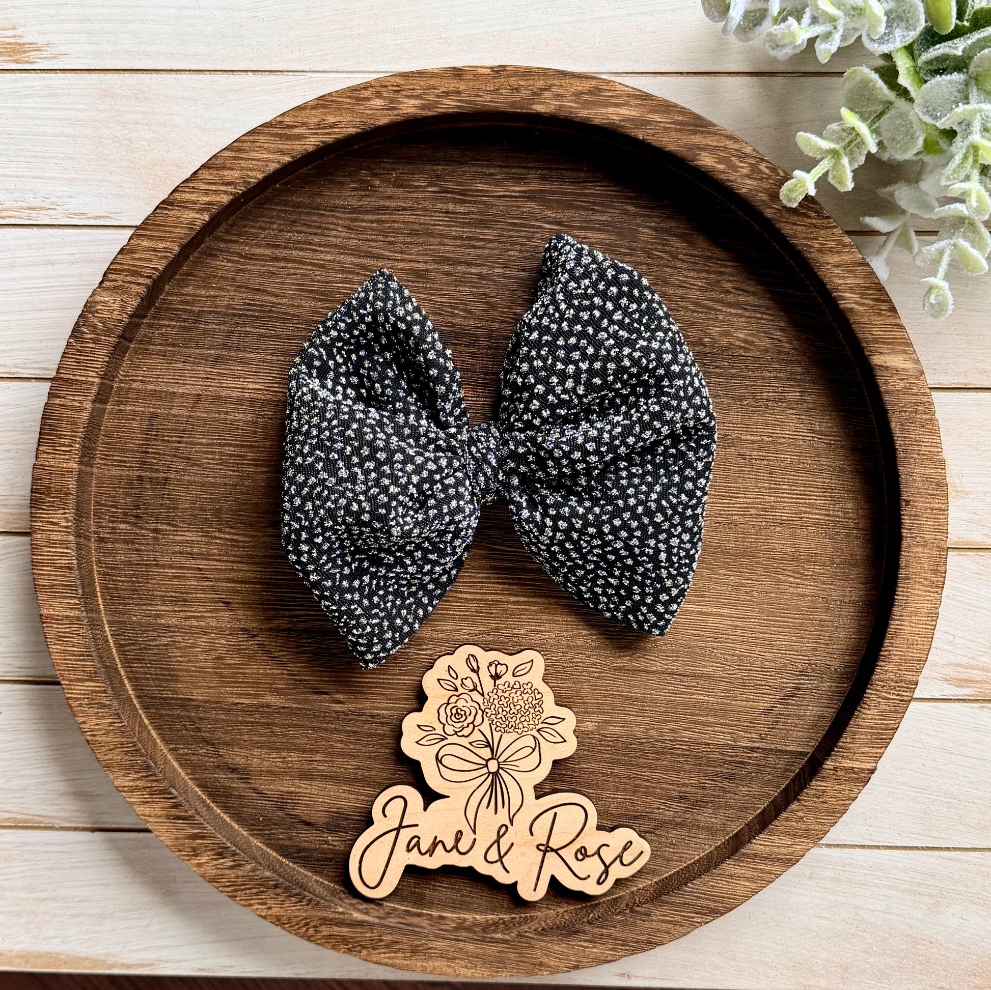 These bows come with your choice of hardware! (Options include: clip, black no slip pony tail band, or nude/black nylon stretchy headband)