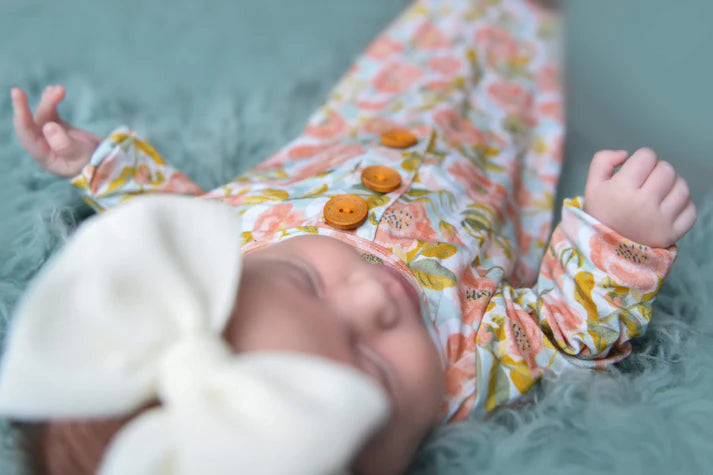 Crafted from the highest quality Bamboo, our gowns are soft and gentle against your baby's delicate skin. From the fold over mittens to protect from scratches to the adjustable knot tie bottom (can you say easy late night diaper changes?!) we included the best features to make your life just a little bit easier. Available in a variety of dreamy colors- a must have for your hospital bag, first photos and newborn snuggles.