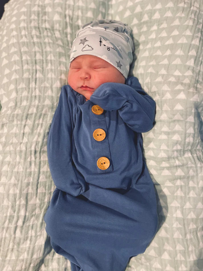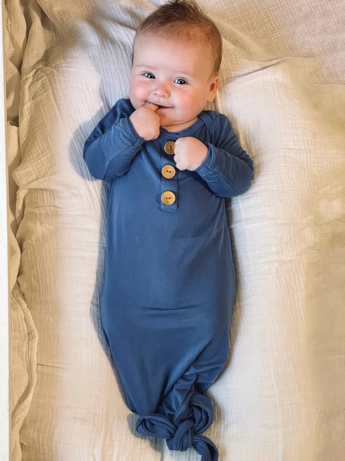 Crafted from the highest quality Bamboo, our gowns are soft and gentle against your baby's delicate skin. From the fold over mittens to protect from scratches to the adjustable knot tie bottom (can you say easy late night diaper changes?!) we included the best features to make your life just a little bit easier. Available in a variety of dreamy colors- a must have for your hospital bag, first photos and newborn snuggles.