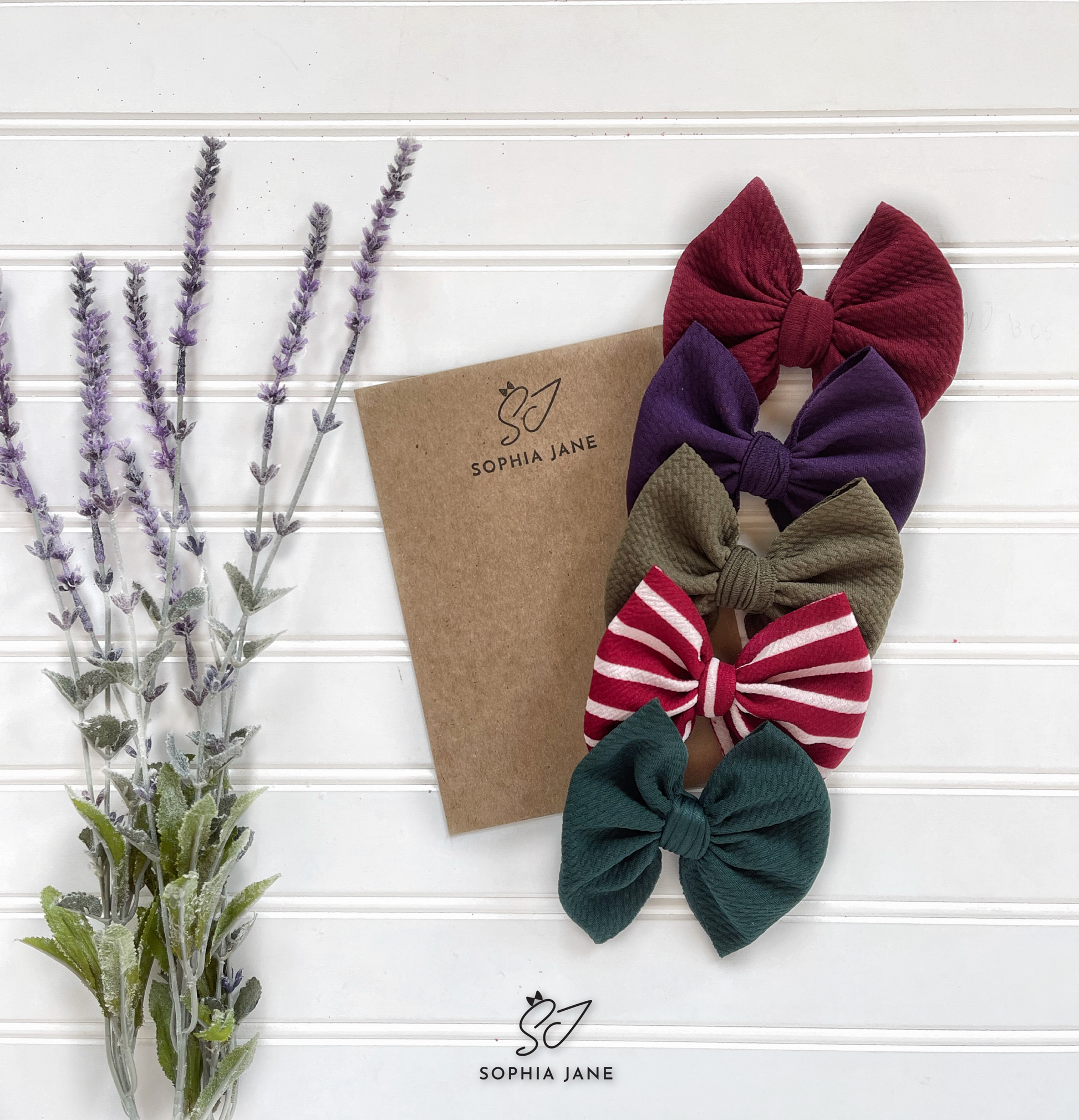 This set comes in a decorative bag with a name tag for you to fill out or leave info in the comments and we will do it for you! Colors are not interchangeable at this time. All bows are an ITTY BITTY BOW 2” on a stretchy nylon band of your choice or alligator clip