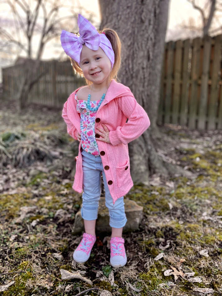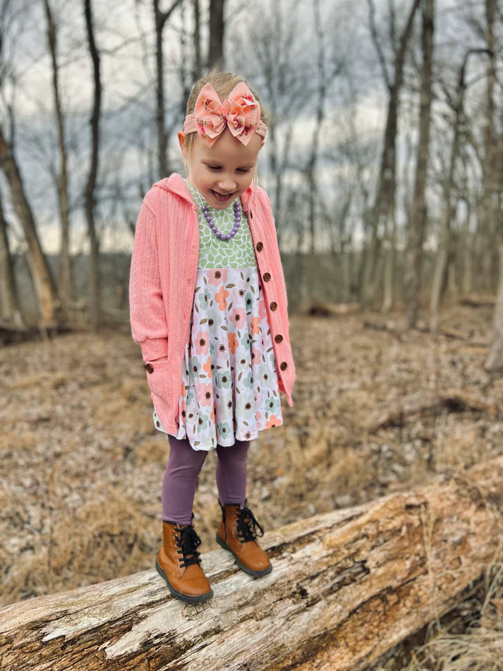 Hooded Button Cardigan | Bubblegum