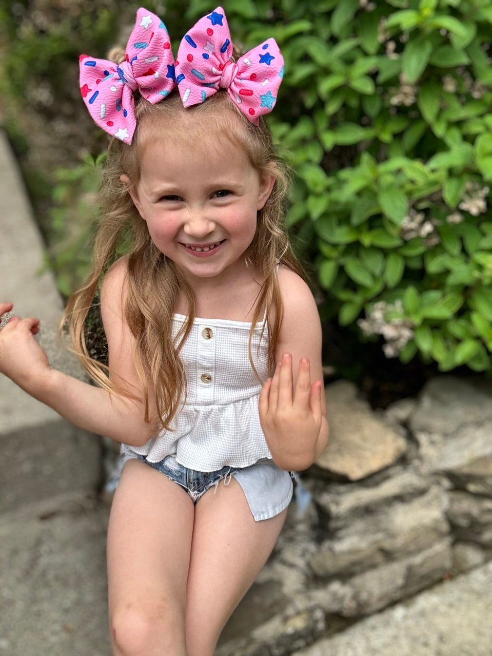 These bows come with your choice of hardware! (Options include: clip, black no slip pony tail band, or nude/black nylon stretchy headband)