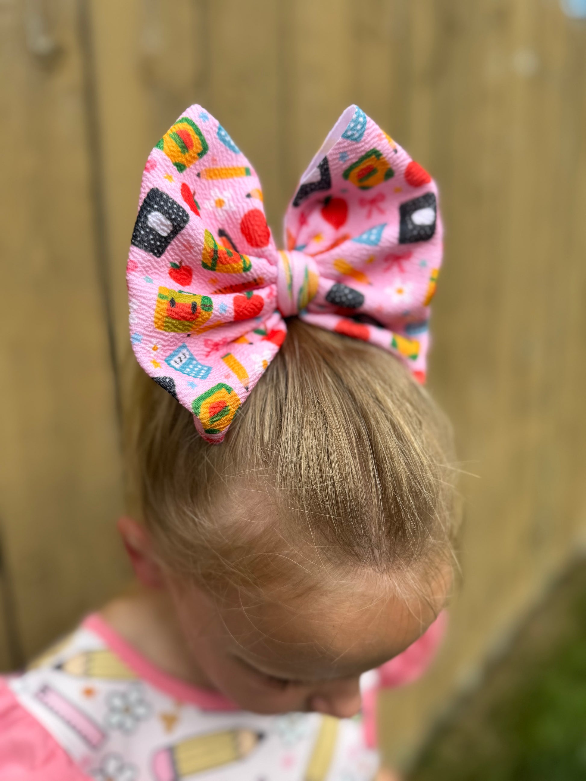 These bows come with your choice of hardware! (Options include: clip, black no slip pony tail band, or nude/black nylon stretchy headband)
