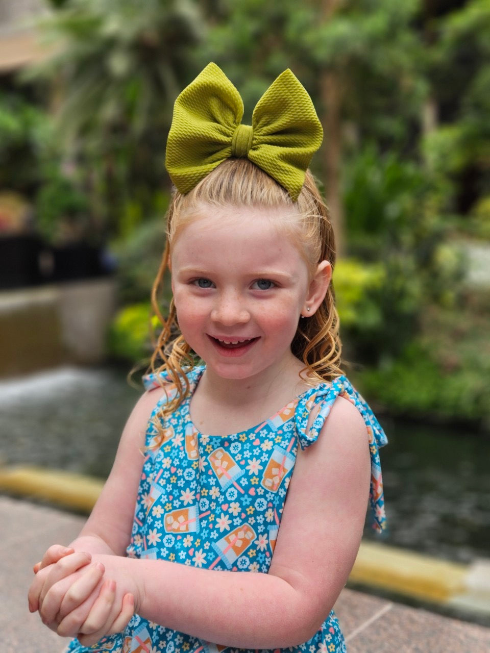 These bows come with your choice of hardware! (Options include: clip, black no slip pony tail band, or nude/black nylon stretchy headband)