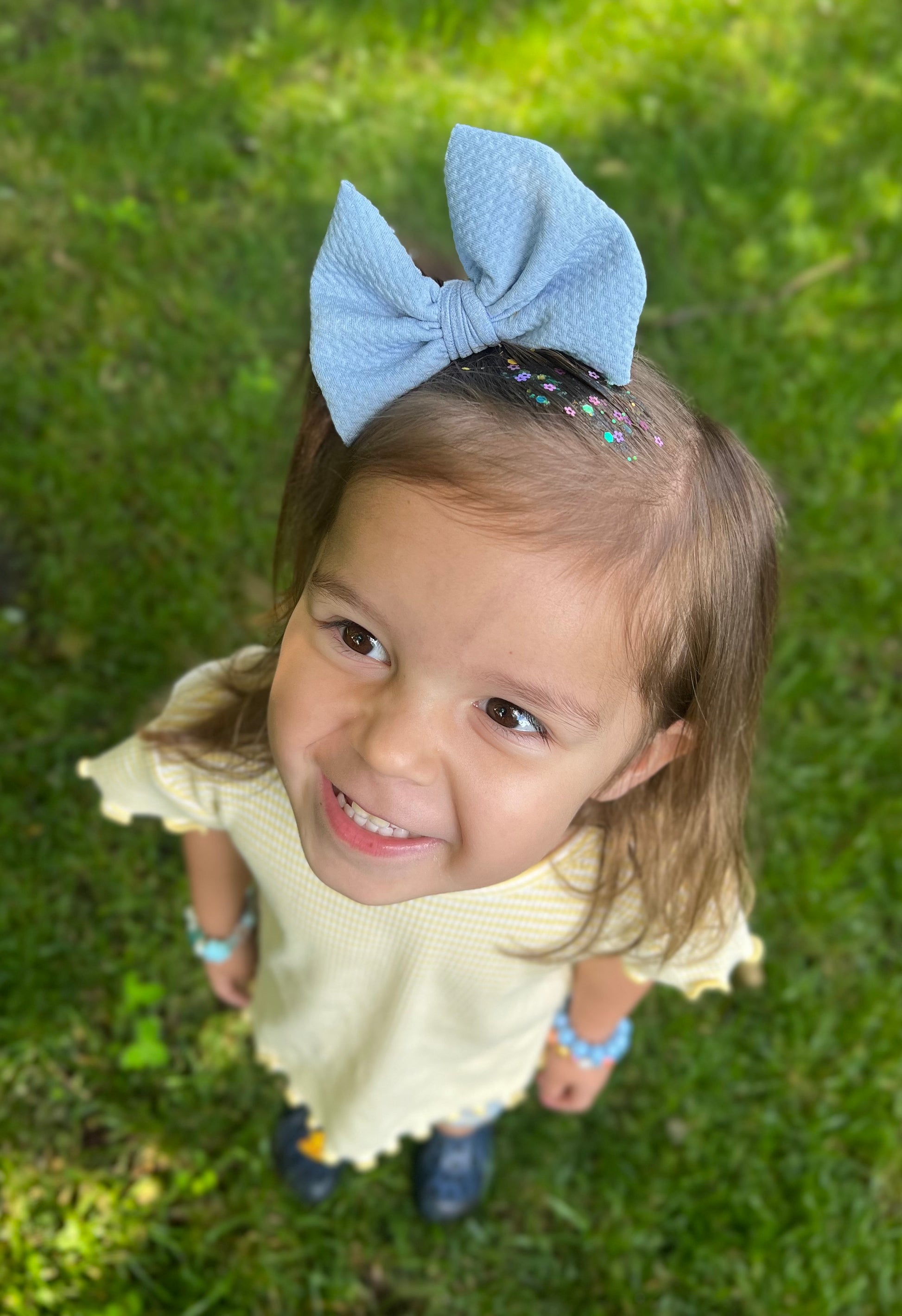 These bows come with your choice of hardware! (Options include: clip, black no slip pony tail band, or nude/black nylon stretchy headband)