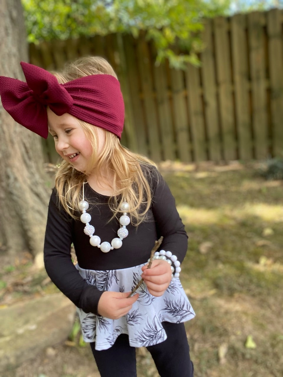 These bows come with your choice of hardware! (Options include: clip, black no slip pony tail band, or nude/black nylon stretchy headband)