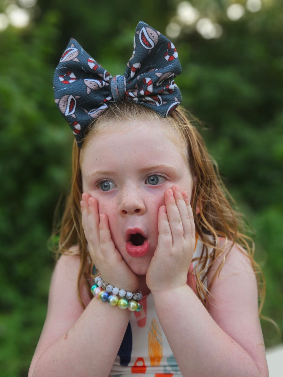 These bows come with your choice of hardware! (Options include: clip, black no slip pony tail band, or nude/black nylon stretchy headband)